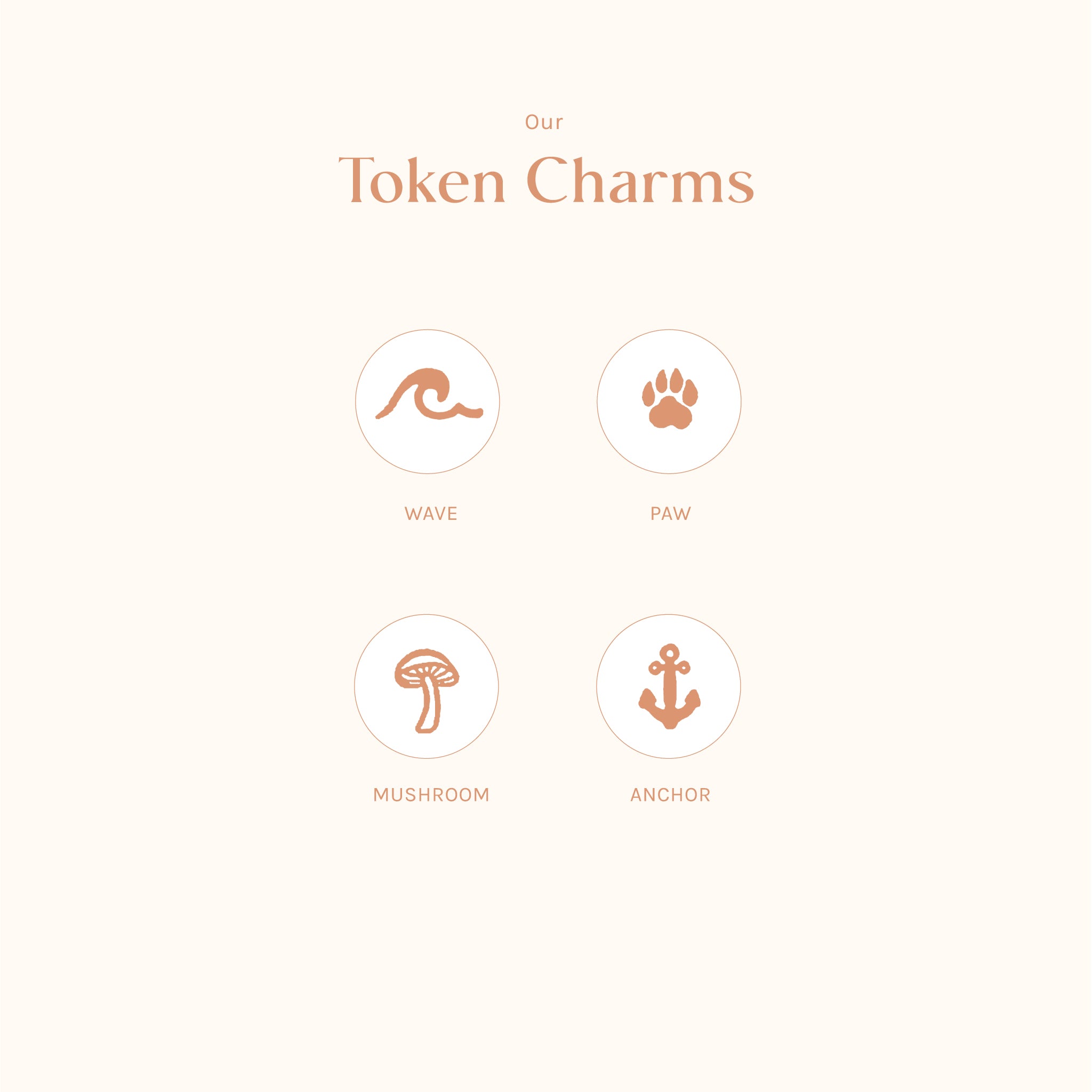 Tiny tokens, big meaning. ✨ Each Token Charm is a petite hand-stamped disc made to hold a little piece of what matters most — whether it’s a nod to your furry friend (🐾), a love of the sea (🌊 ⚓), or a reminder to stay curious (🍄). Thoughtfully designed and made in small batches from recycled metals, these charms carry simple symbols that speak volumes.