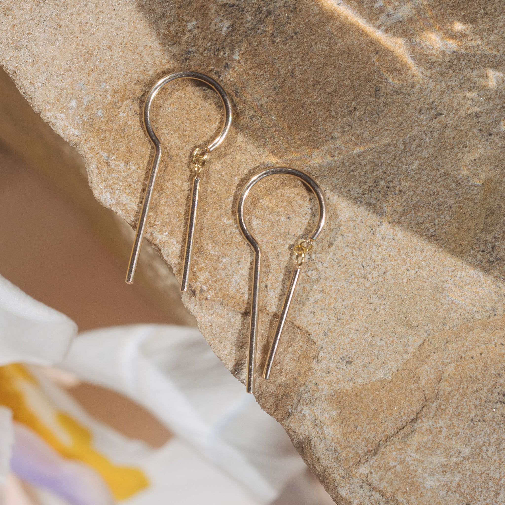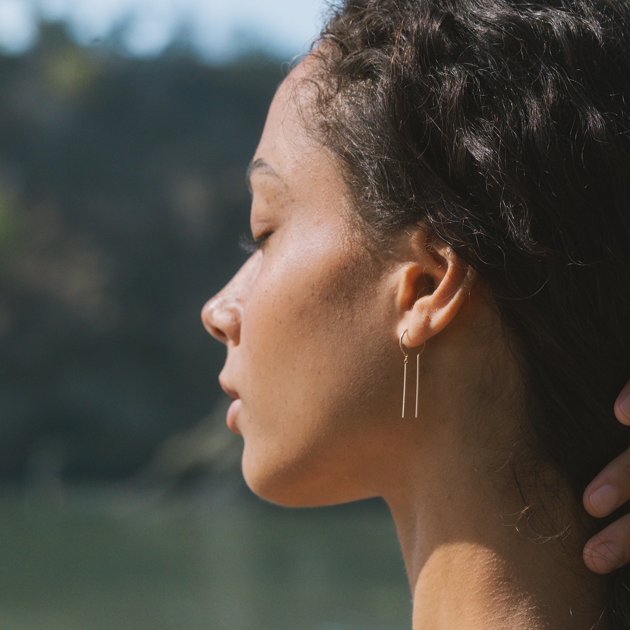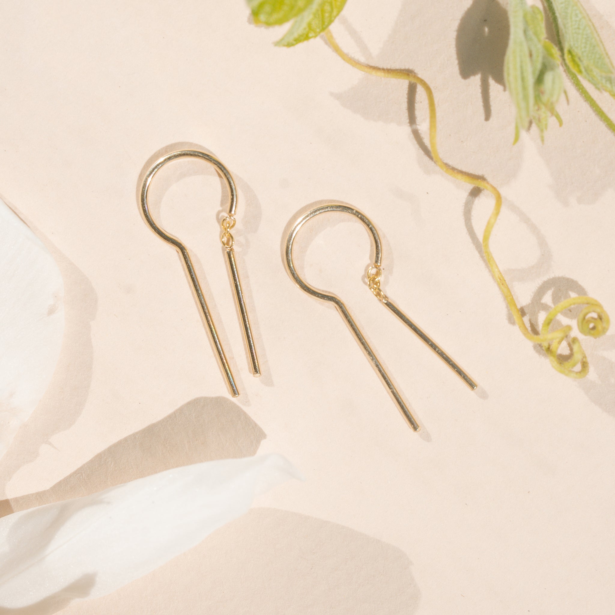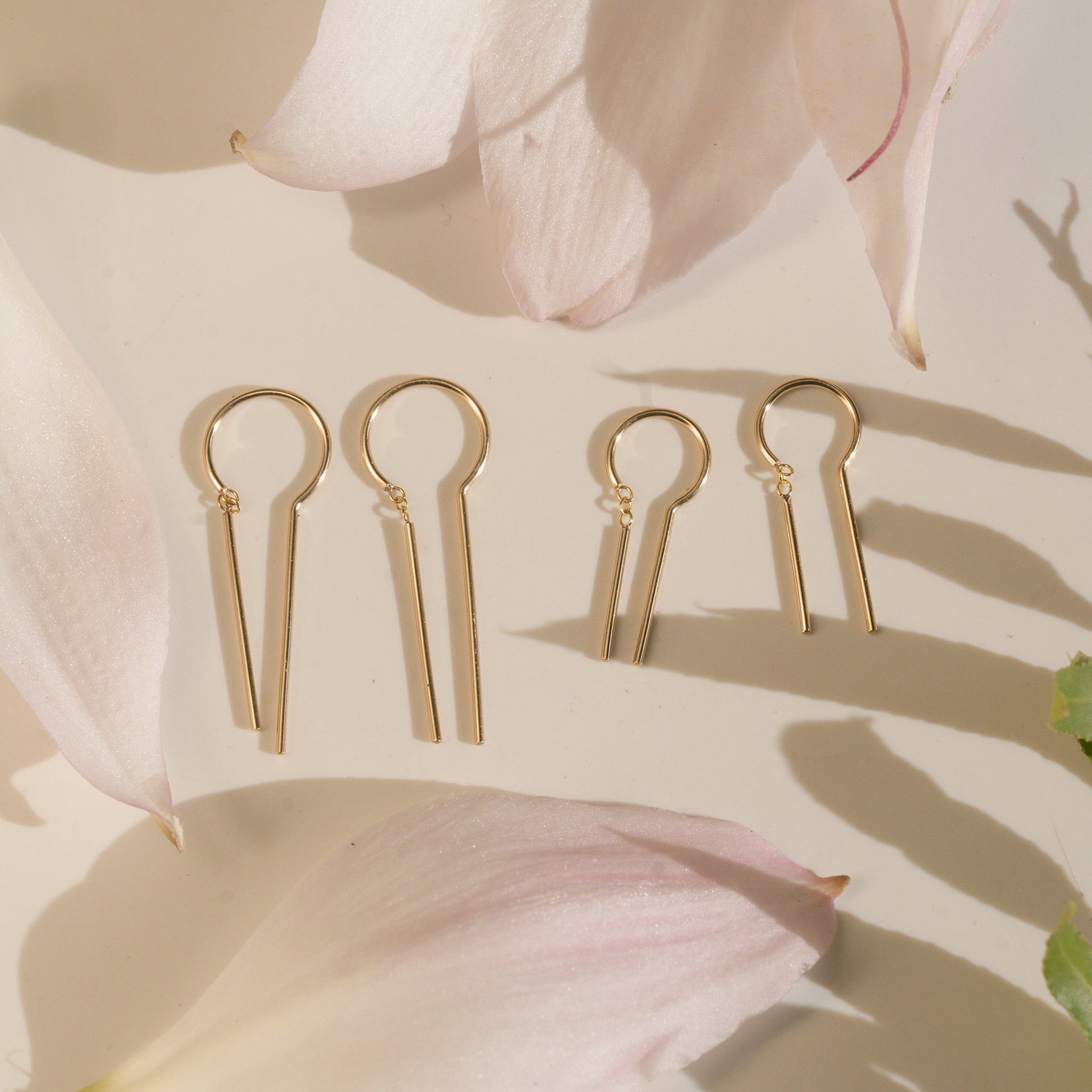 The Large Sway Earring—the perfect balance of elegance and playfulness. Crafted from Gold-filled metal, these thread-through earrings offer effortless movement, with one delicate chime-like end that gently moves with your every step. Available in two sizes, they’re designed to complement any occasion, adding a little sway to your day without missing a beat. Lightweight and eye-catching, The Sway Earring brings a touch of whimsy and shine to your jewelry collection.