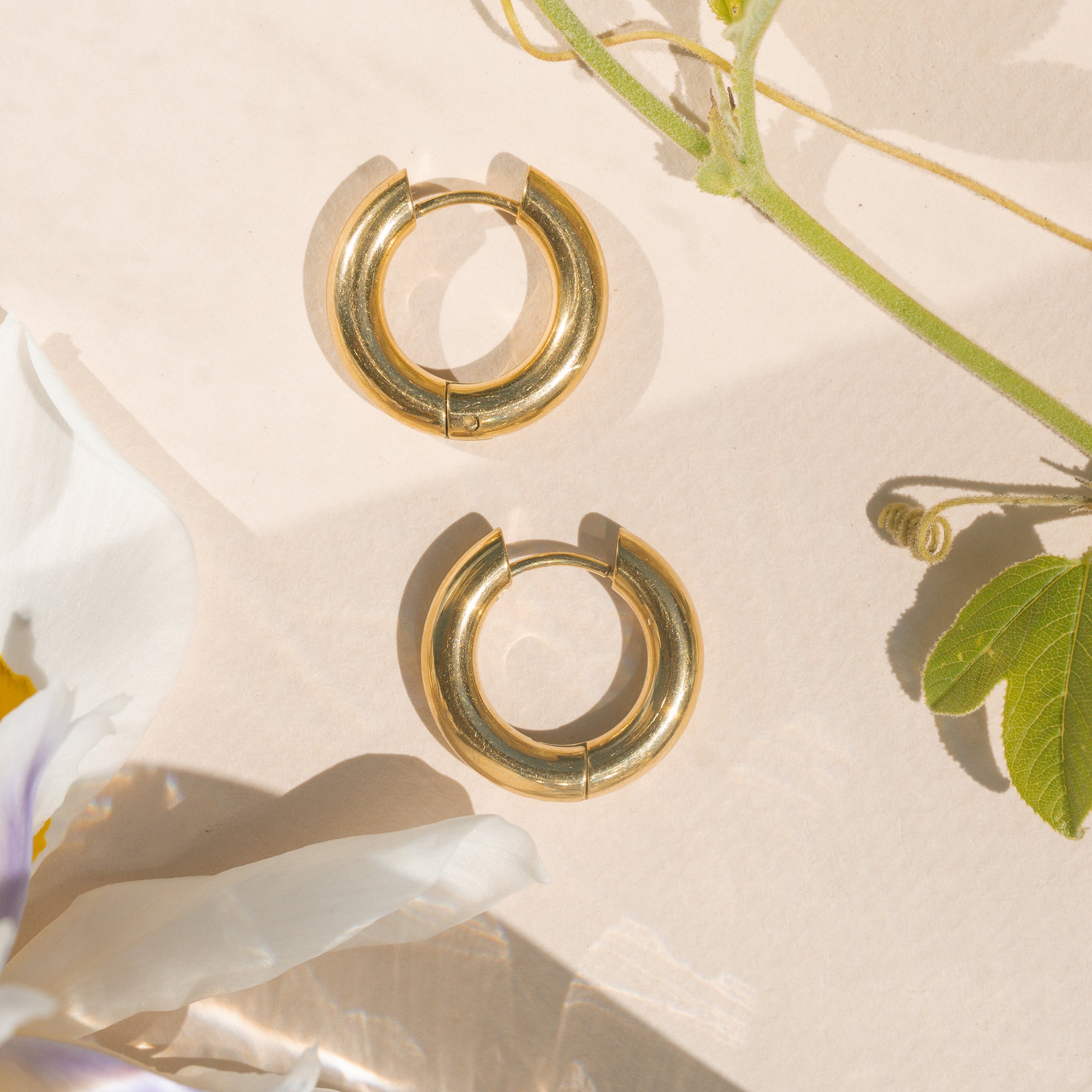 Meet the Plum Hoop — a modern take on a timeless classic. Designed with a rounded profile that reflects light beautifully, these hoops strike the perfect balance between bold and effortless. Lightweight, versatile, and endlessly wearable, the Plum Hoop is the kind of earring you’ll reach for every single day.