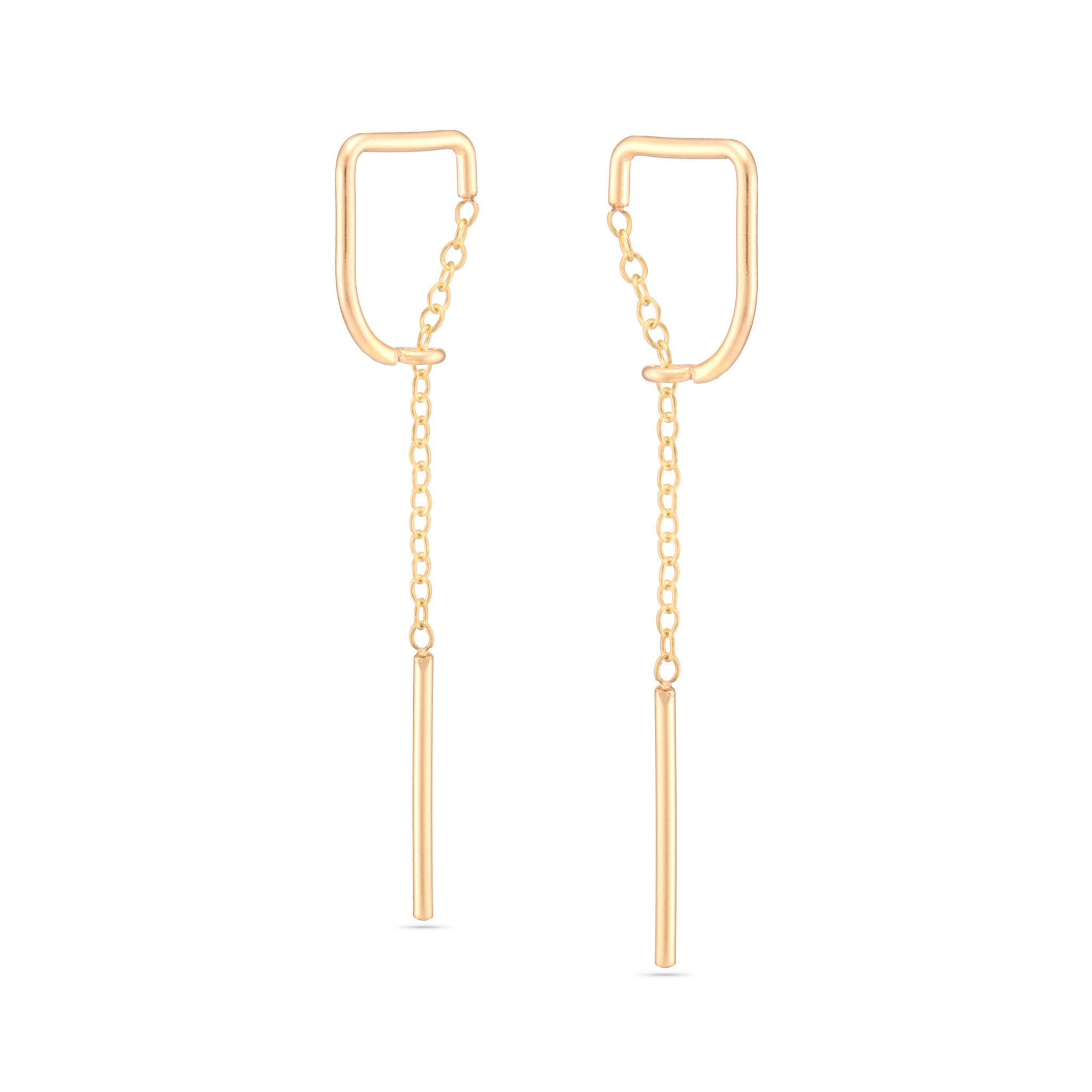 A little swing, a little shine — Giddy-up! The Rodeo Earring is made to move with you. Featuring a sculptural U-shaped hoop paired with a delicate chain and sleek bar that drops through a tiny ring, this design blends structure with fluidity. Lightweight and comfortable, it adds just the right amount of playfulness to a minimal silhouette, making it perfect for everyday wear or a subtle statement at night.