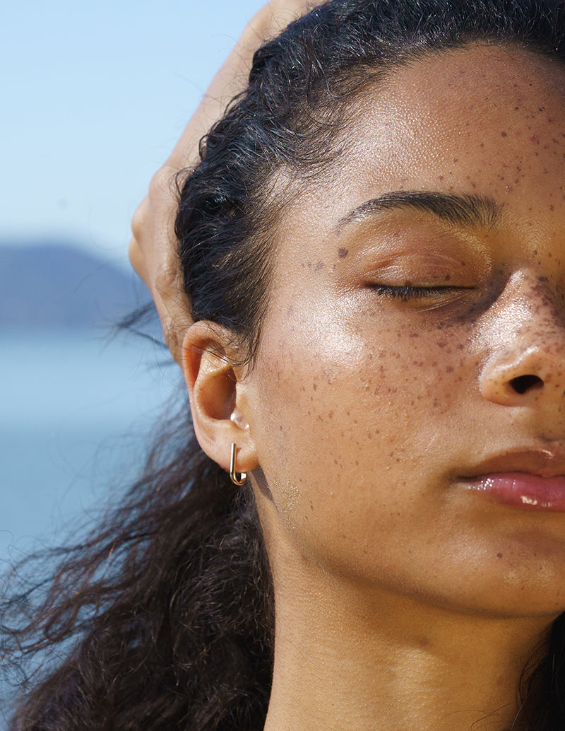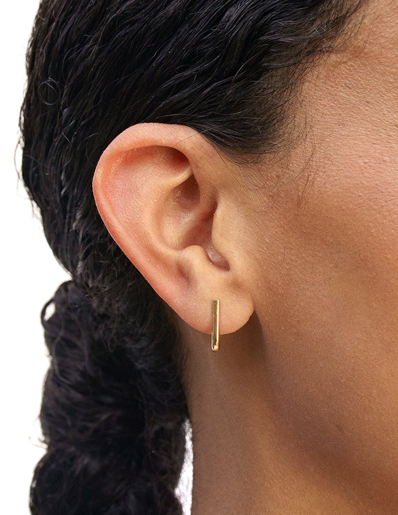 The Nest Earring is designed to gently hug the lobe, creating a soft U-shape that feels both minimal and sculptural. The clean vertical line and rounded base give it a modern look, while the close fit keeps the silhouette subtle and easy to wear.