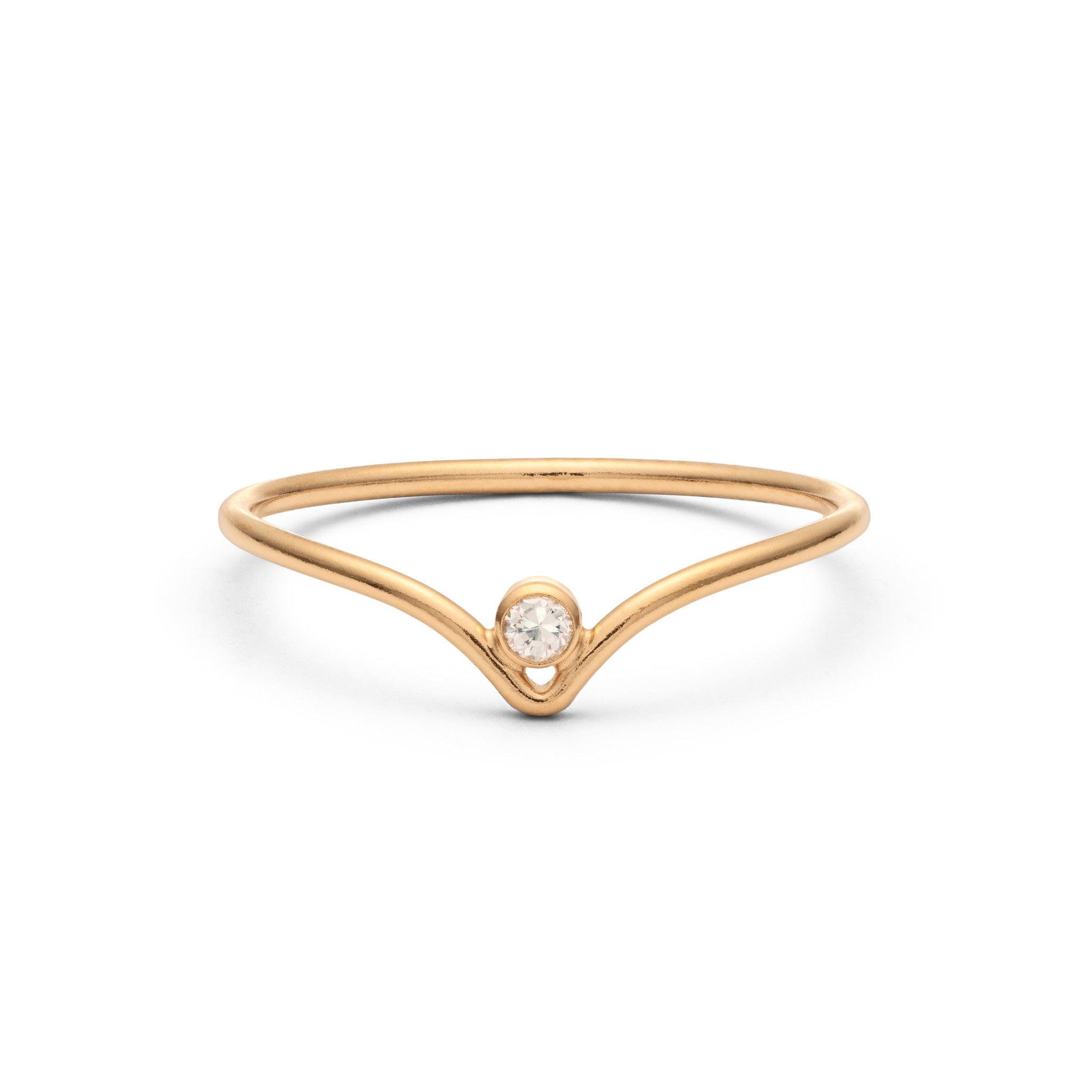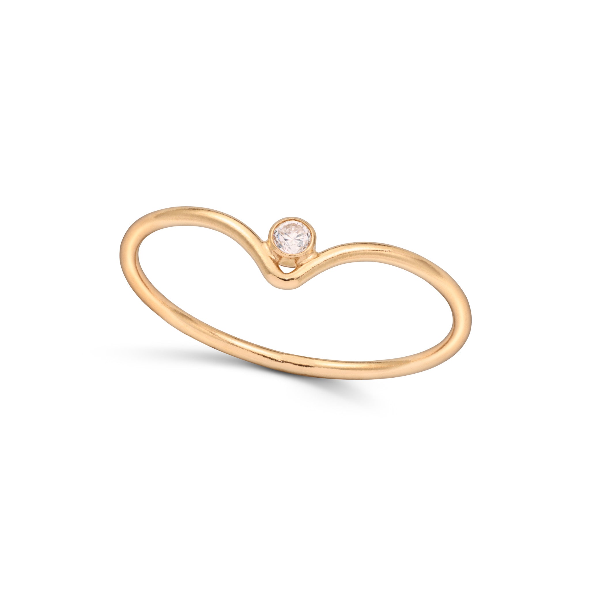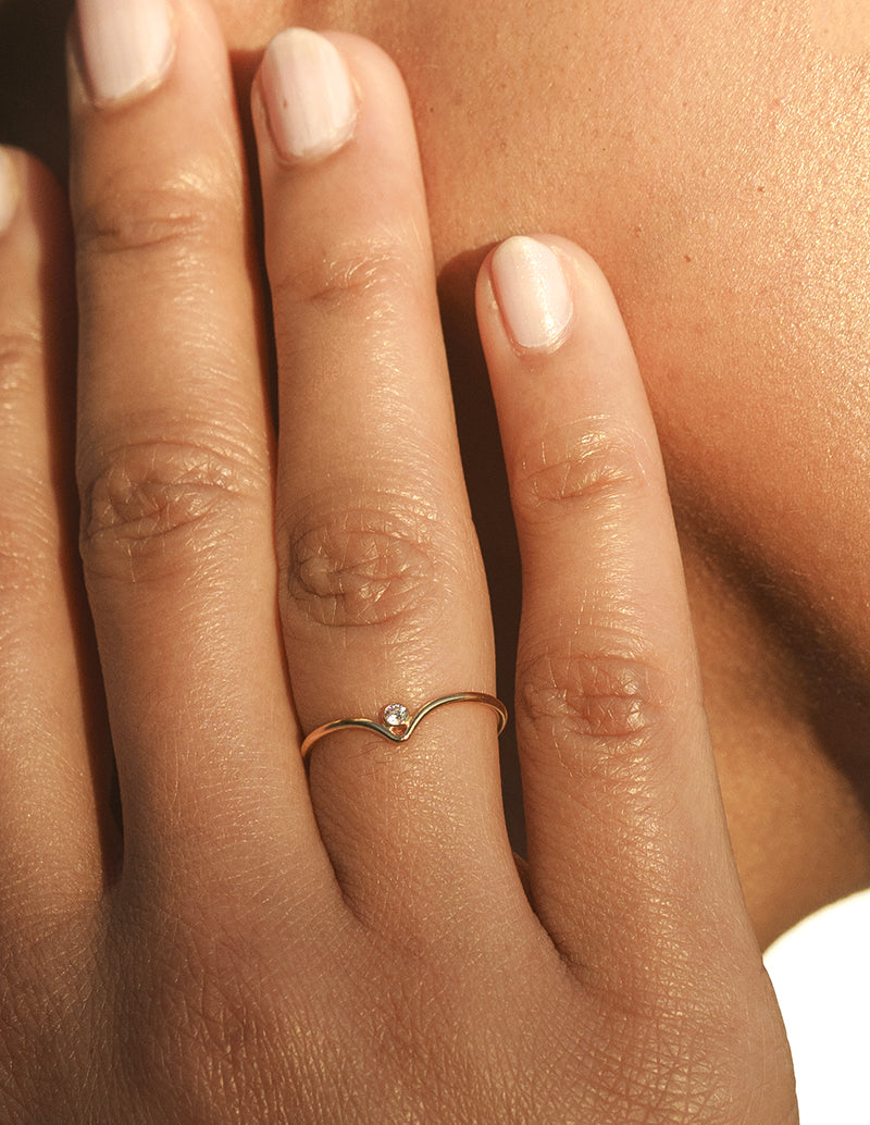 The Nook Ring features a gentle contour that dips into a subtle point, cradling a tiny CZ stone at its center. The setting creates a delicate “nook” for the stone—giving the ring its name and a quiet sense of intention.