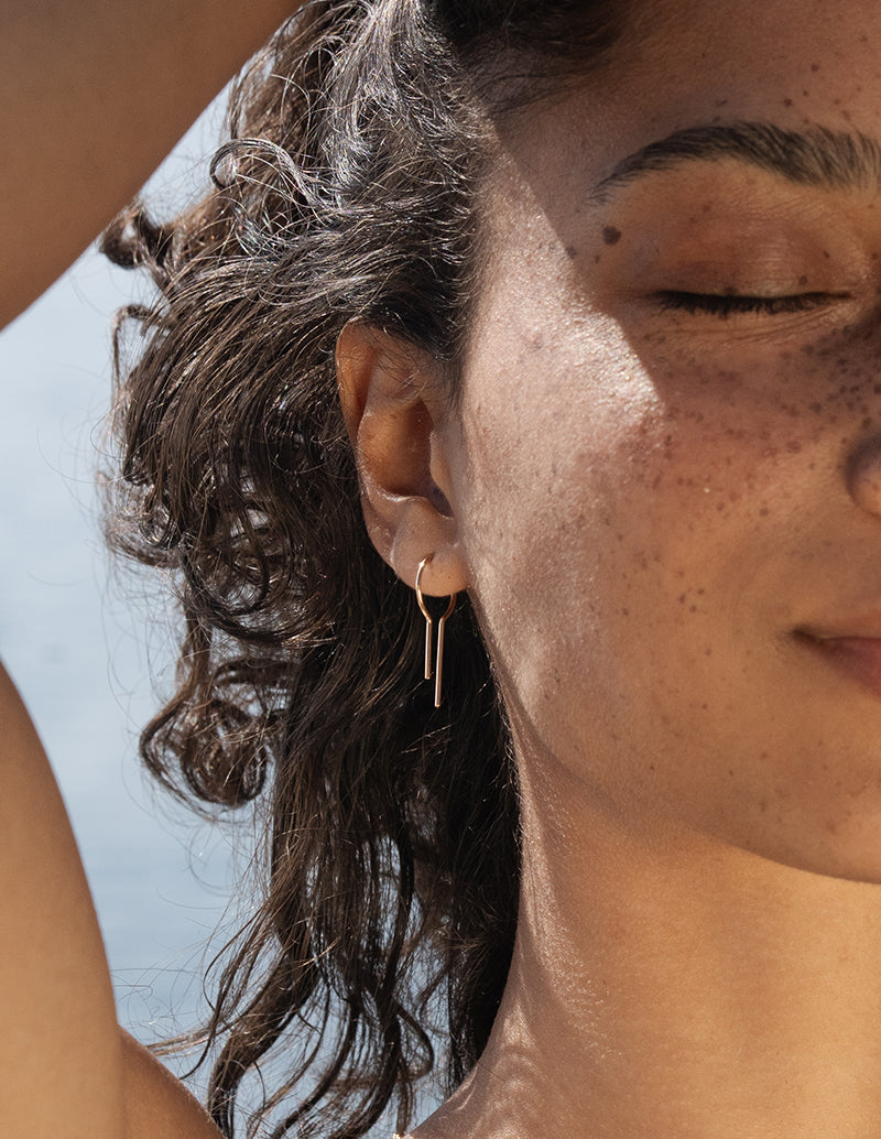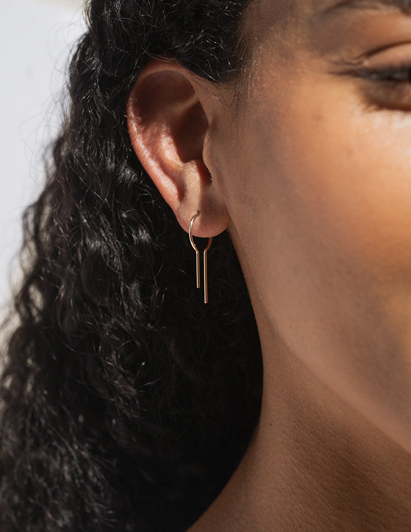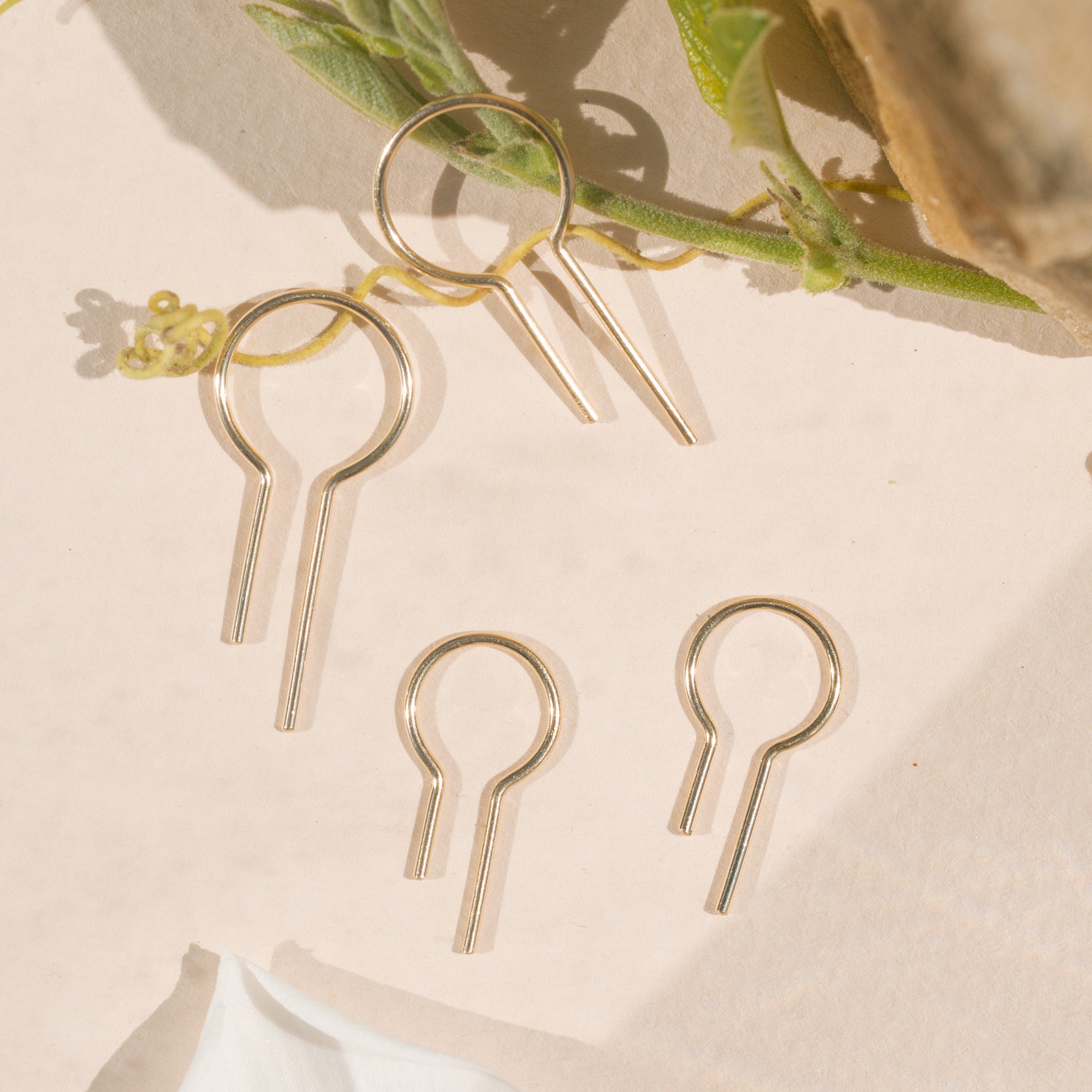 A little bigger, just as effortless. The Latch Earring is the sister style to our Tiny Latch — offering the same clean, minimal silhouette with a touch more presence. Designed to hug the ear with just the right amount of drop, this lightweight hoop adds easy shine to your everyday look. Perfect on its own or paired with the Tiny Latch for a layered effect.