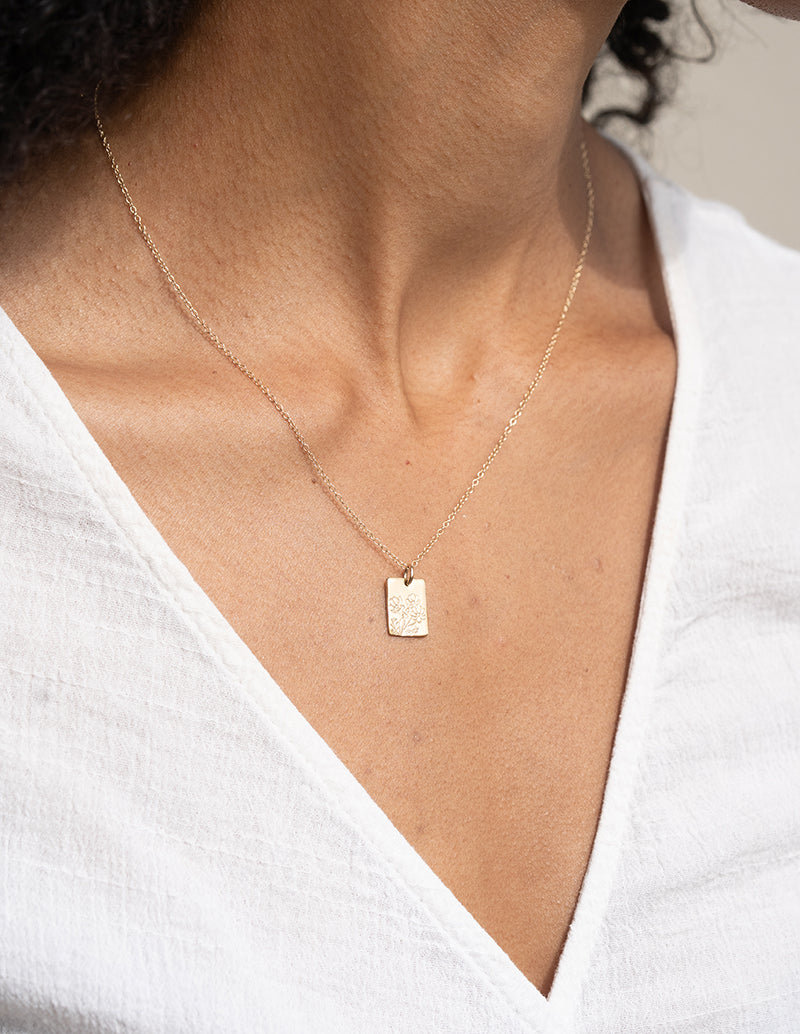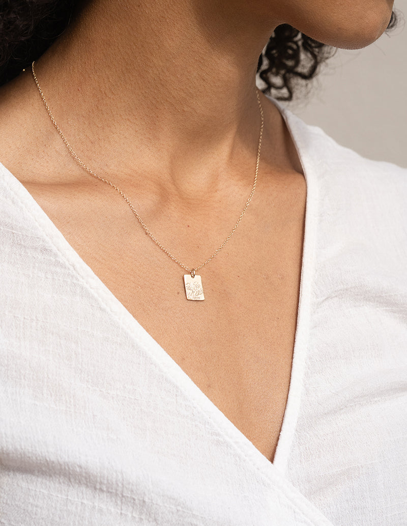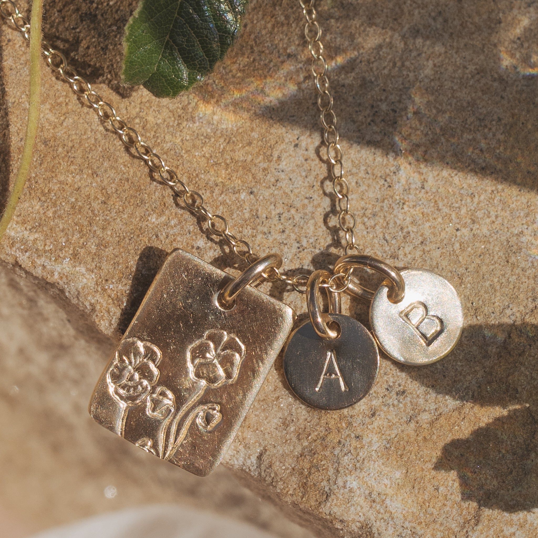 Hand-stamped 14k Gold-Filled pendant measures 1/2"