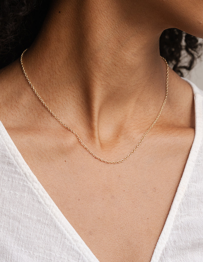 Light as air and endlessly versatile, the Aire Necklace is a delicate chain that’s as effortless as it is elegant. Its fine, minimal design makes it perfect for everyday wear—whether you keep it simple on its own, layer it with other favorites, or use it as the foundation for your personal collection of pendants and charms.